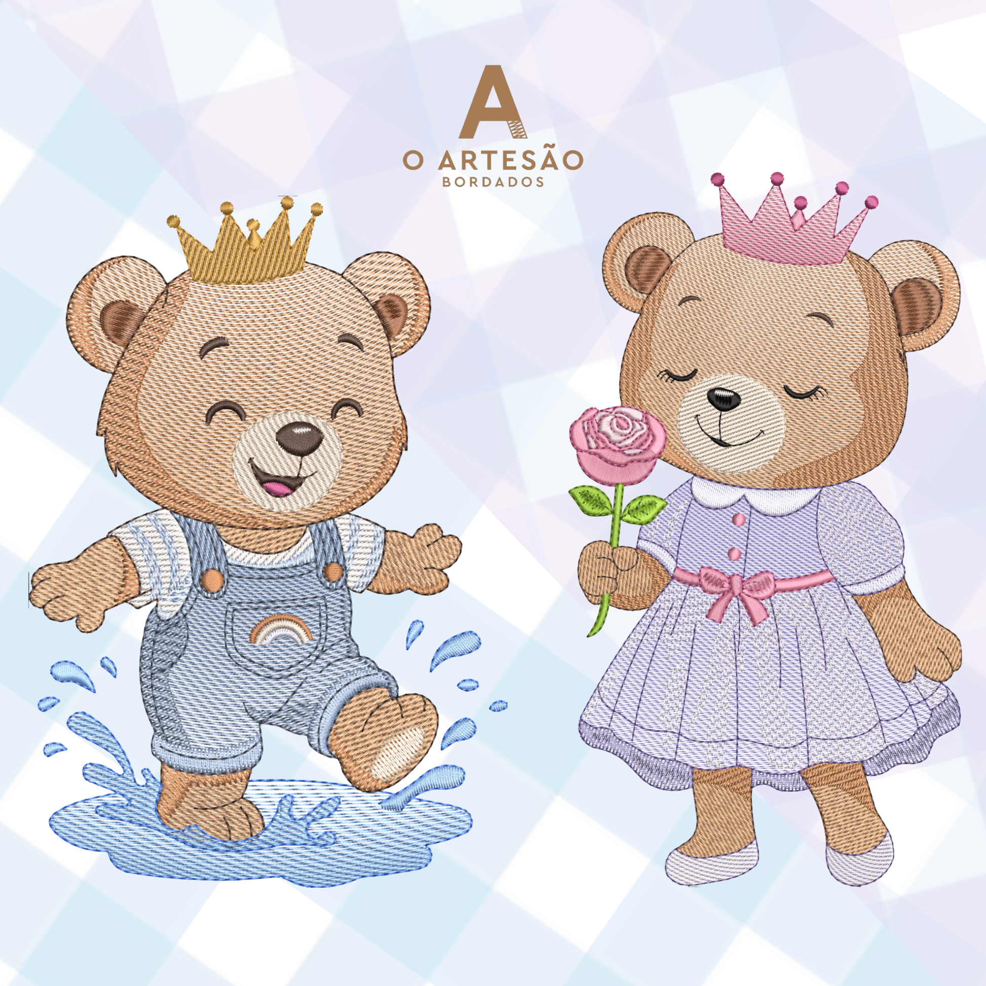 Uma dupla de deixar o coração quentinho! Composta pelas matrizes: Ursinho Fofo e Ursinha Fofa, que também podem ser adquiridas separadamente