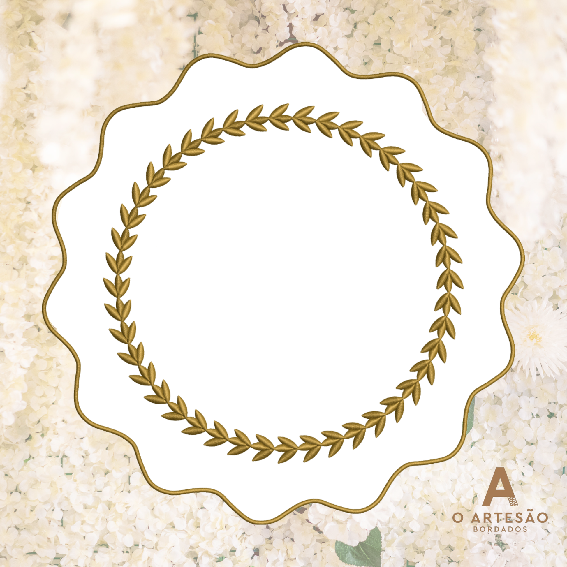 Matriz de Bordado Sousplat e Moldura Ramos de Folhas Douradas — Download Imediato